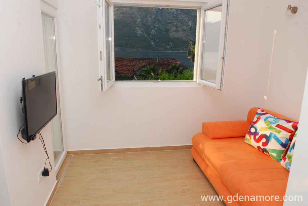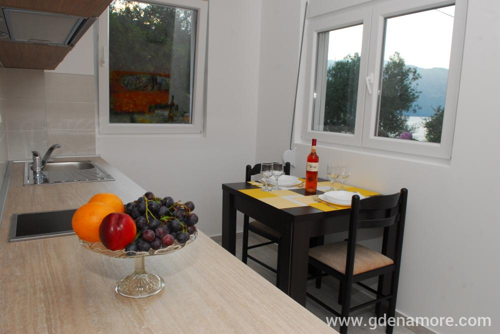 Апартаменты расположены в 15 м от моря, в 8 км от центра Тивата и в 8 км от центра Котора. В непосредственной близости находятся 3 ресторана, магазины, пекарня и почта. В каждой квартире есть кондиционер, красивая терраса с видом на море, беспроводной доступ в Интернет и спутниковое телевидение. Во всех апартаментах есть полностью оборудованная кухня с гостиным уголком, гостиная с телевизором и отдельная спальня. Квартиры имеют вид на два острова Богоматери Скрпьела и Св. Георгия и город Пераст. Вдоль туристической тропы, ведущей к Горному Столиву, вы сможете насладиться прекрасным видом на залив, два острова Богоматери Скрпило и Св. Георгия и город Пераст. До Горни Столив можно дойти пешком за 30 минут. Во время прогулки вы насладитесь природой с каштановыми и оливковыми деревьями. Такая красивая природа с разнообразными деревьями представляет собой воздушный курорт, которым славится Столив.